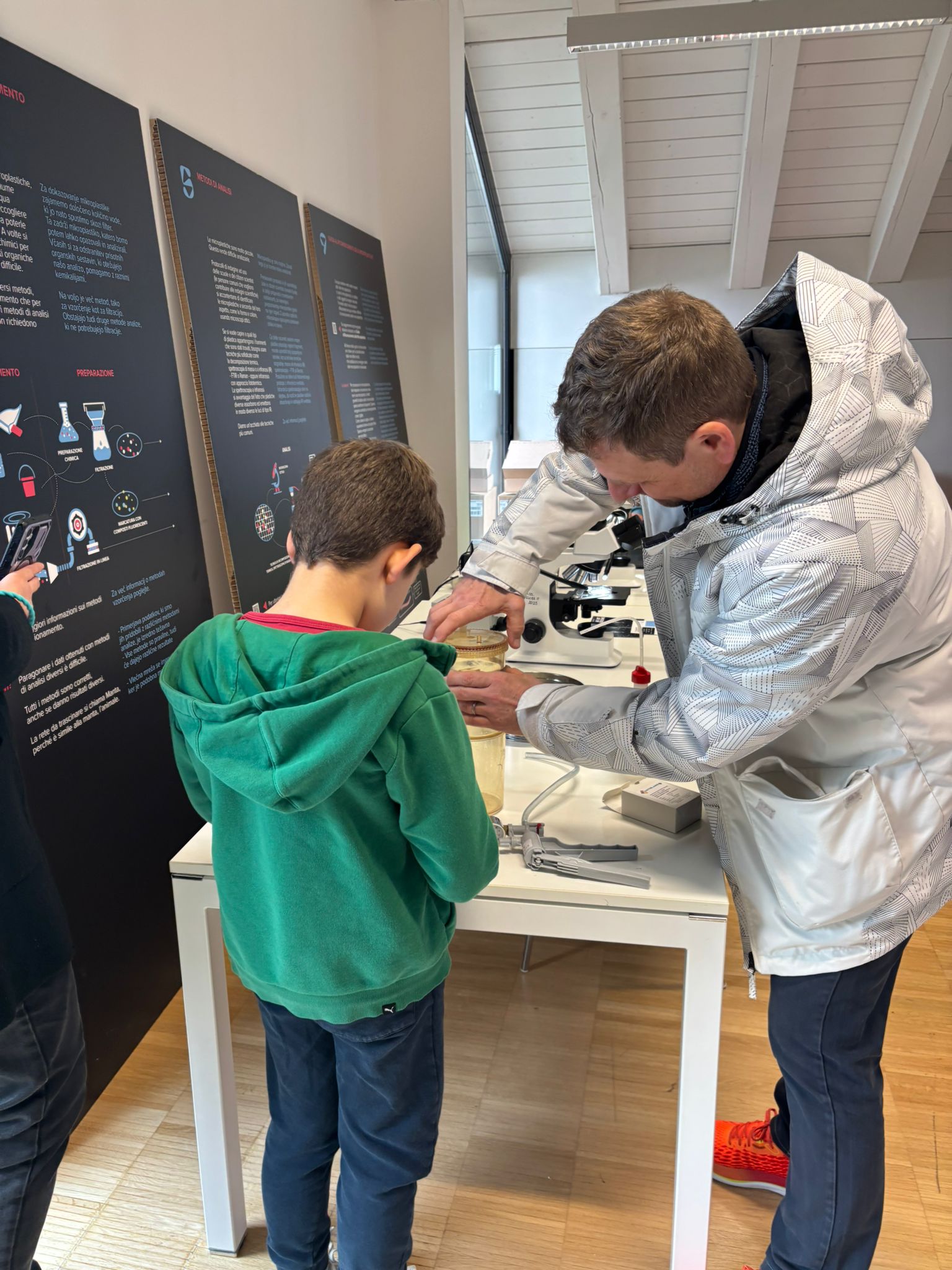 Nella settimana di apertura presso la Casa della Musica, oltre 300 persone hanno visitato la mostra: scolaresche accompagnate dai loro docenti e cittadini, tutti molto interessati alla novità del tema trattato e incuriositi dagli esiti della campagna "Cacciatori di microplastiche" condotta su alcuni fiumi della regione FVG dagli studenti dell'ISIS della Bassa Friulana.
