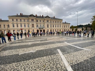Si sono poi riuniti in Piazza della Transalpina, emblema delle due città Nova Gorica-Gorizia, oggi insieme Capitale Europea della Cultura 2025 il cui motto è NO-BORDERS.